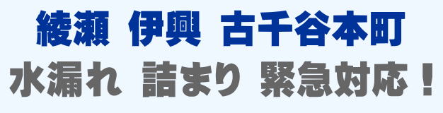 綾瀬 伊興 古千谷本町での水の困った即解決!急な水道トラブルに緊急でかけつけ訪問し、蛇口の水漏れ、トイレ詰まり、排水の溢れ、タンクの故障など修理いたします。